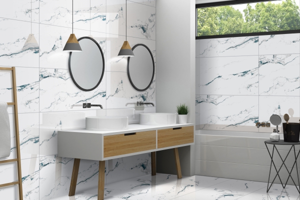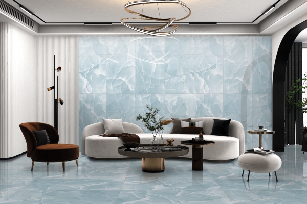 High gloss porcelain tiles can be used in various spaces, including living rooms, kitchens, bathrooms, hallways, and even commercial settings.